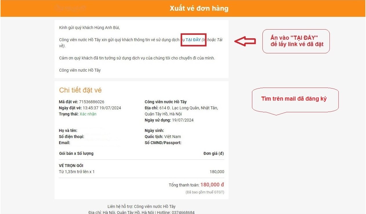 Bước 5: Sau khi thanh toán thành công, bạn có thể lấy vé trực tiếp hoặc mở email để lấy vé
