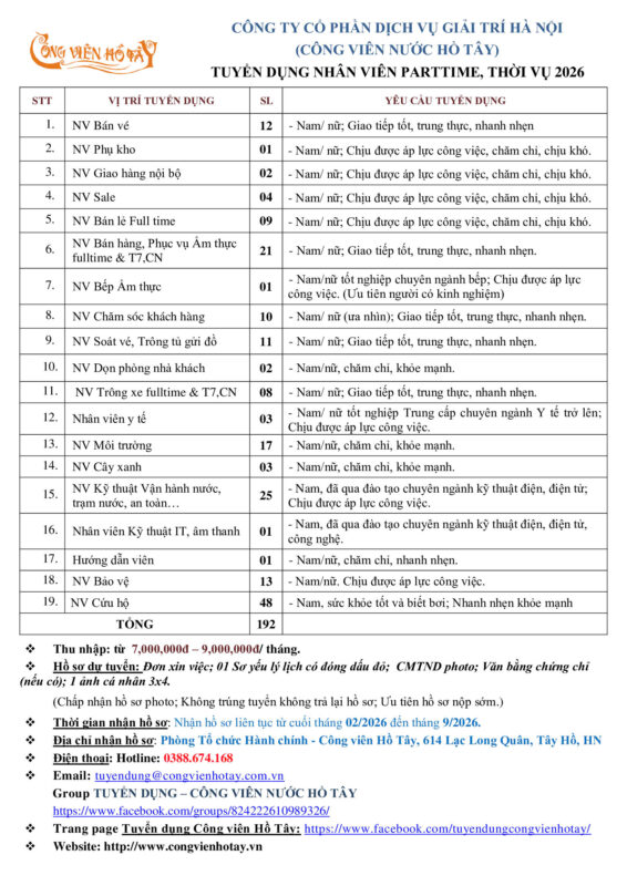 Khuyến mãi - Sự kiệnCÔNG VIÊN NƯỚC HỒ TÂY 2026 – TUYỂN DỤNG KHAI XUÂN BÍNH NGỌ 2026 – KHỞI ĐẦU BỨT PHÁ test